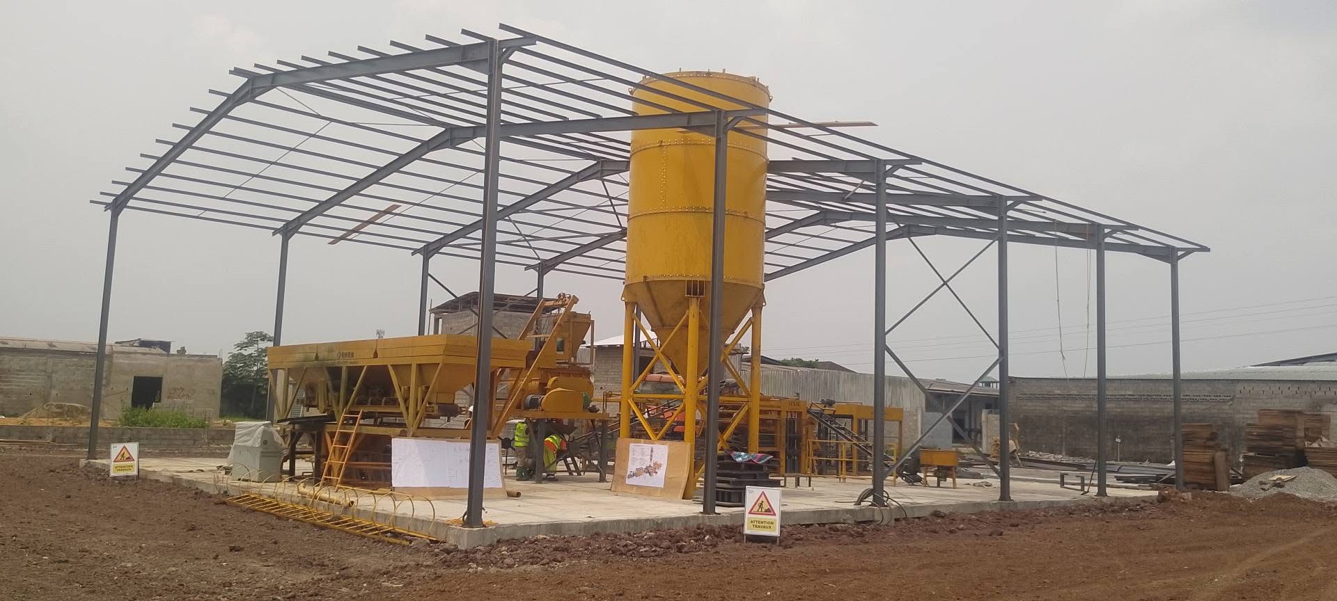 Des ateliers complémentaires , une centrale à béton et un atelier de menuiserie,