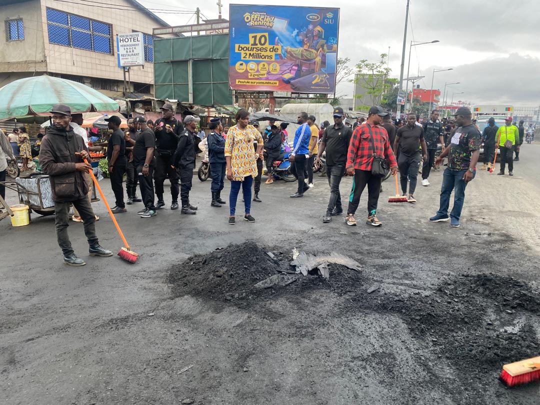 Dans le cadre du lancement de ce nouveau concept, la directrice de la Police municipale de la Cud, Arlette Alémoka, est descendue ce 31 octobre avec ses hommes sur la Nationale numéro 3 à Village, munis d’outils de nettoyage.
