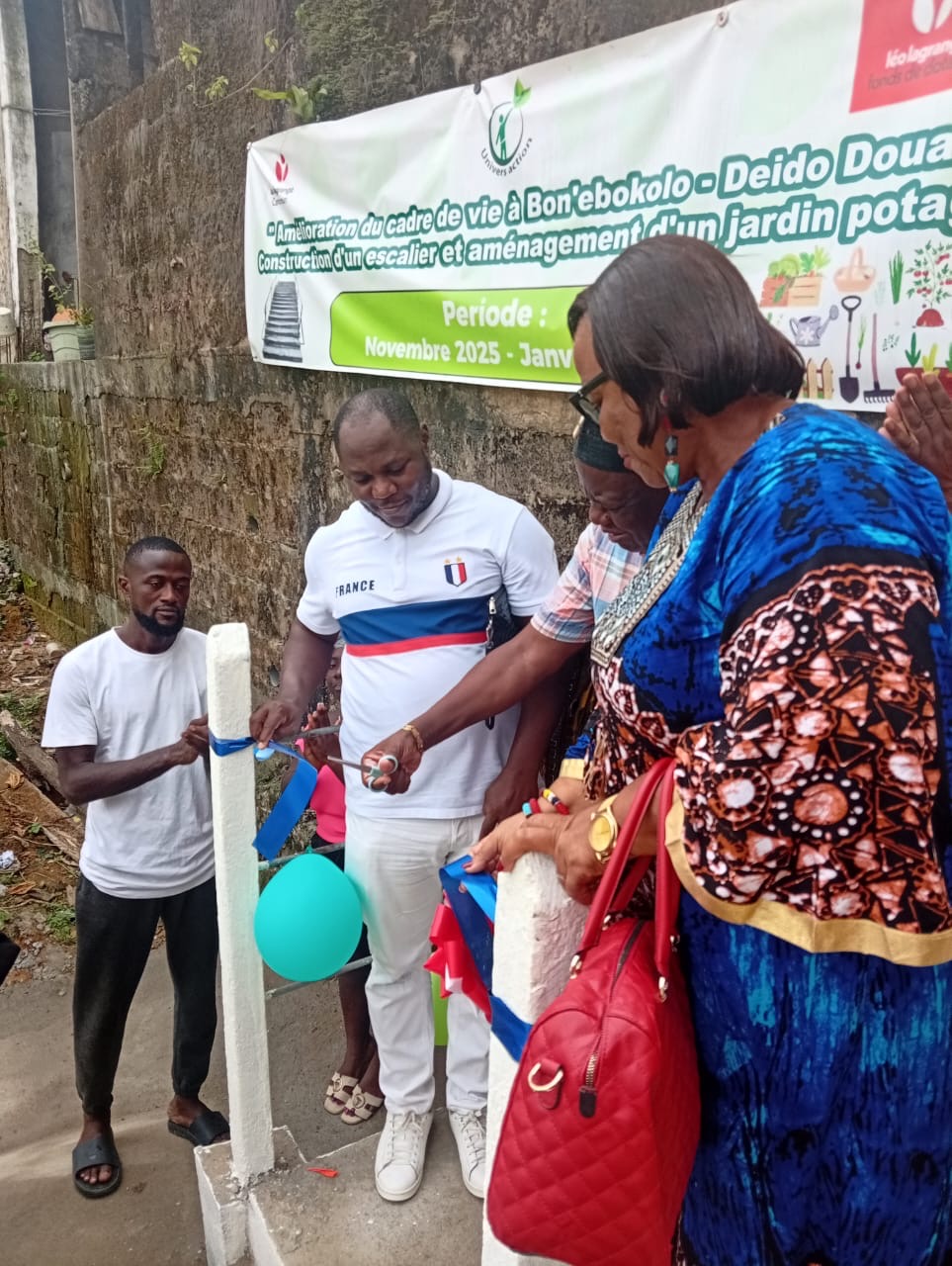 Le projet de construction de l’escalier et de l’aménagement de cet espace vert à Bon’ebokolo’ est une initiative de Univers-action. Elle a été motivée par la volonté de cette l’association d’améliorer le cadre de vie des résidents confrontés aux difficultés d’accès à leurs domiciles et à la dégradation de leur environnement. L’objectif visé entre en droite ligne avec sa mission à savoir, « éveiller les consciences sur l’urgence écologique et transformer les quartiers en modèles de salubrité ».